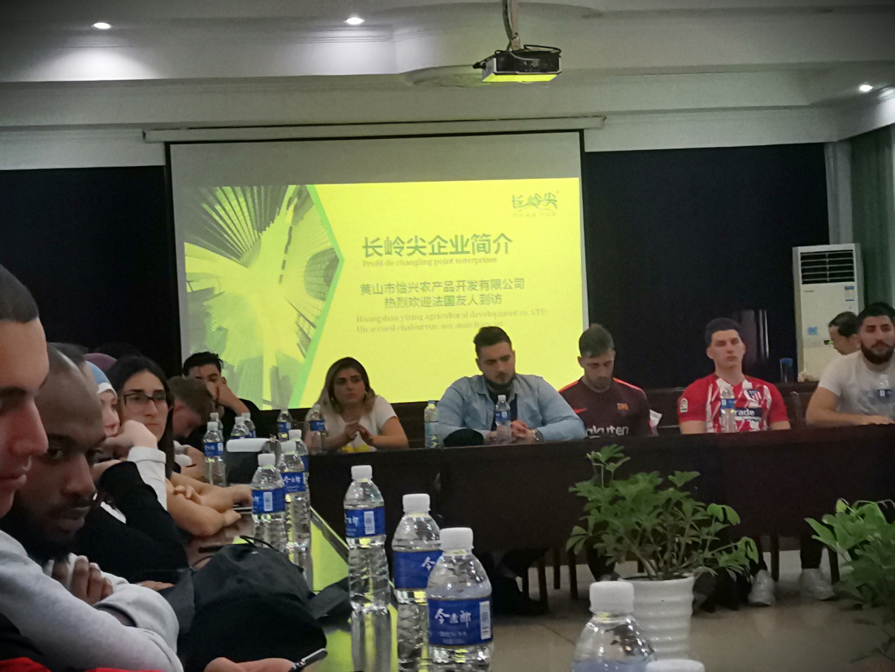 圍繞著法國的紅酒、埃菲爾鐵塔、浪漫主義、極致追求;圍繞著世界的黃山、中國的徽州、徽州的徽商等,進(jìn)行深入的交流討論,從而引出了公司在自有工廠、自有基地、產(chǎn)品保障體系、市場(chǎng)布局能力等方面進(jìn)行了分享與交流。法國的友人們,對(duì)公司的情況聽得十分的投入,掌聲不斷。